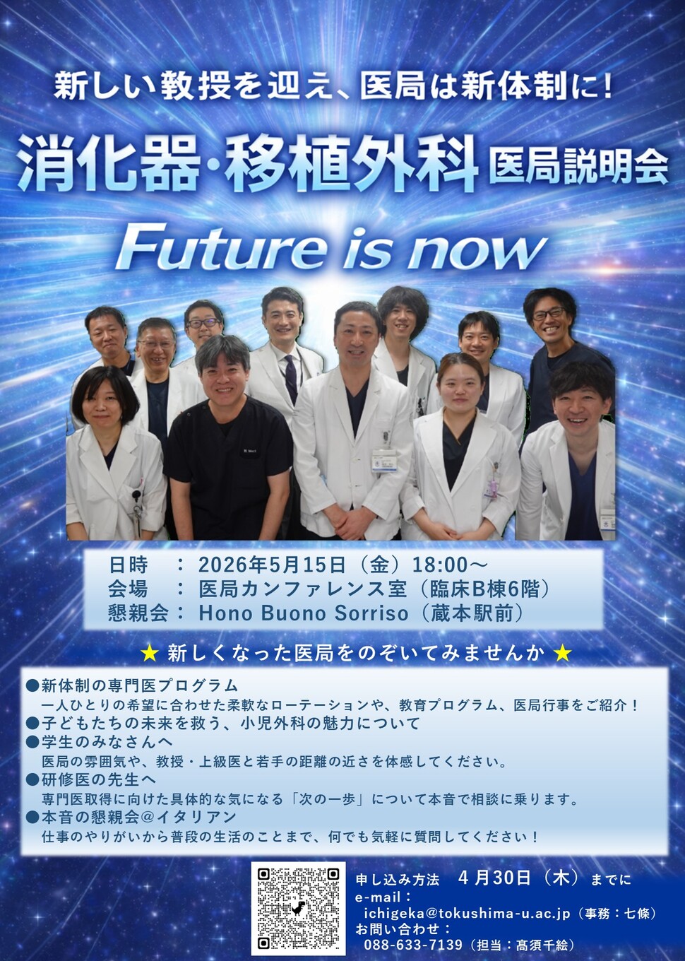 2026年04月21日【R8.5.15(金)開催】消化器・移植外科医局説明会